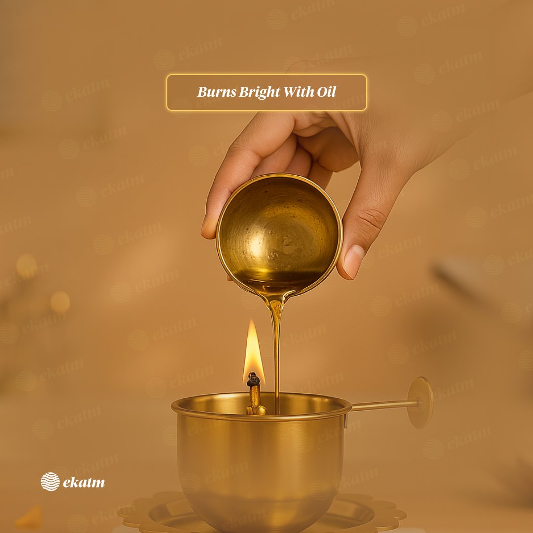 Each Ekatm Akhand Jyoti Diya is handmade using pure brass, ensuring durability, a rich golden shine, and resistance to rust or corrosion.